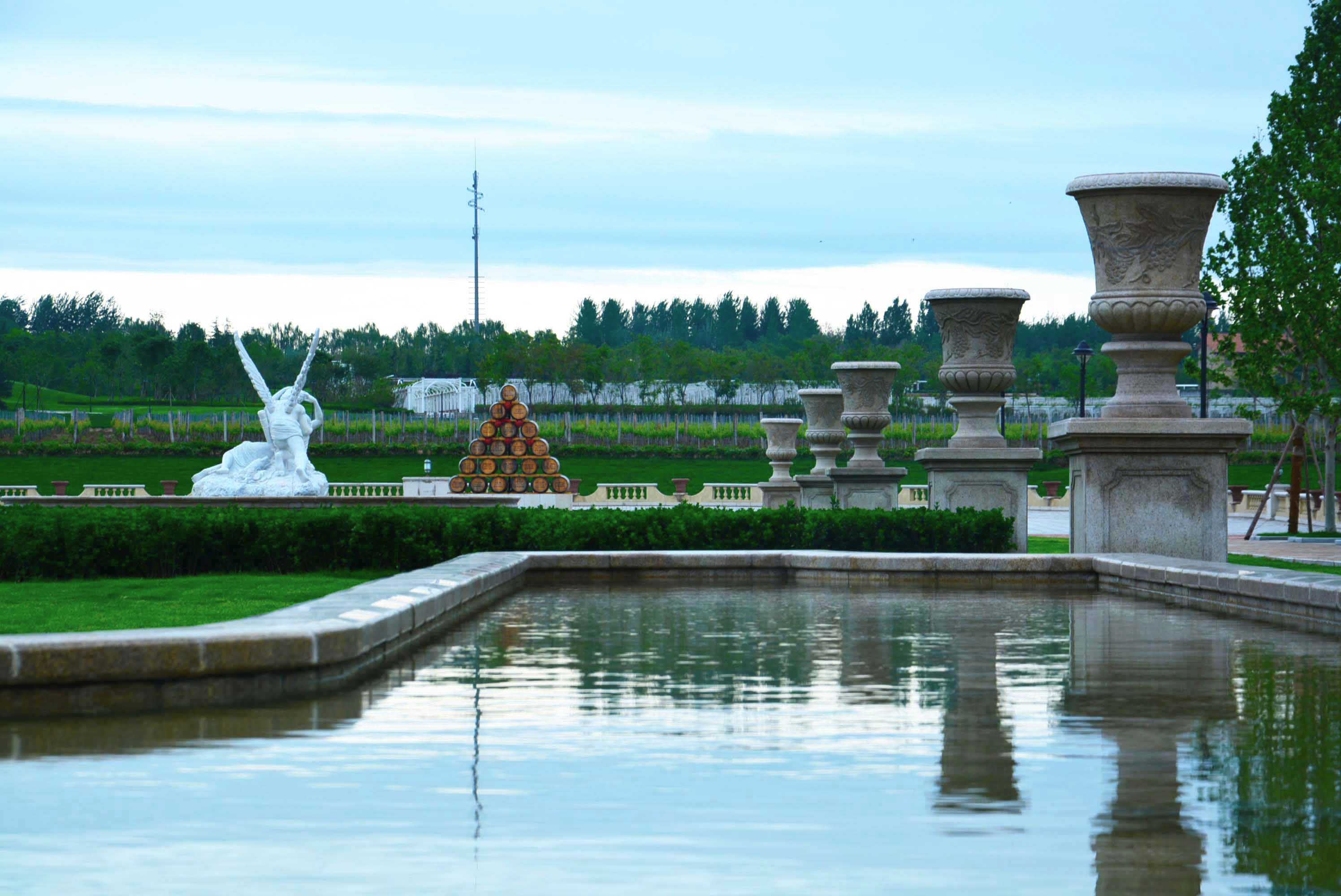 远远就看到大片郁郁葱葱的葡萄园,葡萄园后是一座意大利托斯卡纳风情的大城堡,这就是陕西张裕瑞那城堡酒庄。